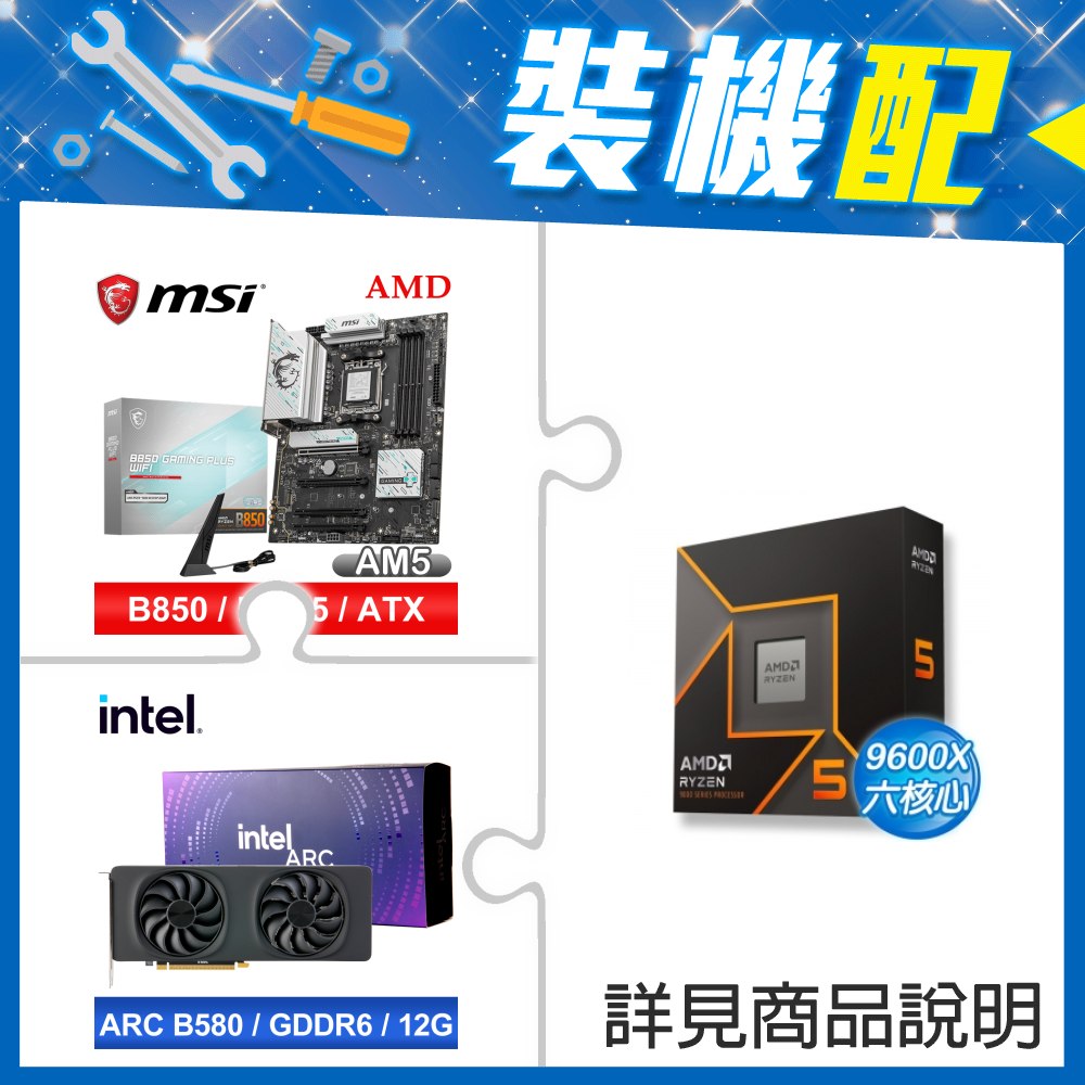 ☆裝機配★ AMD R5 9600X+微星 B850 GAMING PLUS WIFI ATX主機板+Intel Arc B580 12G 20 Core 顯示卡