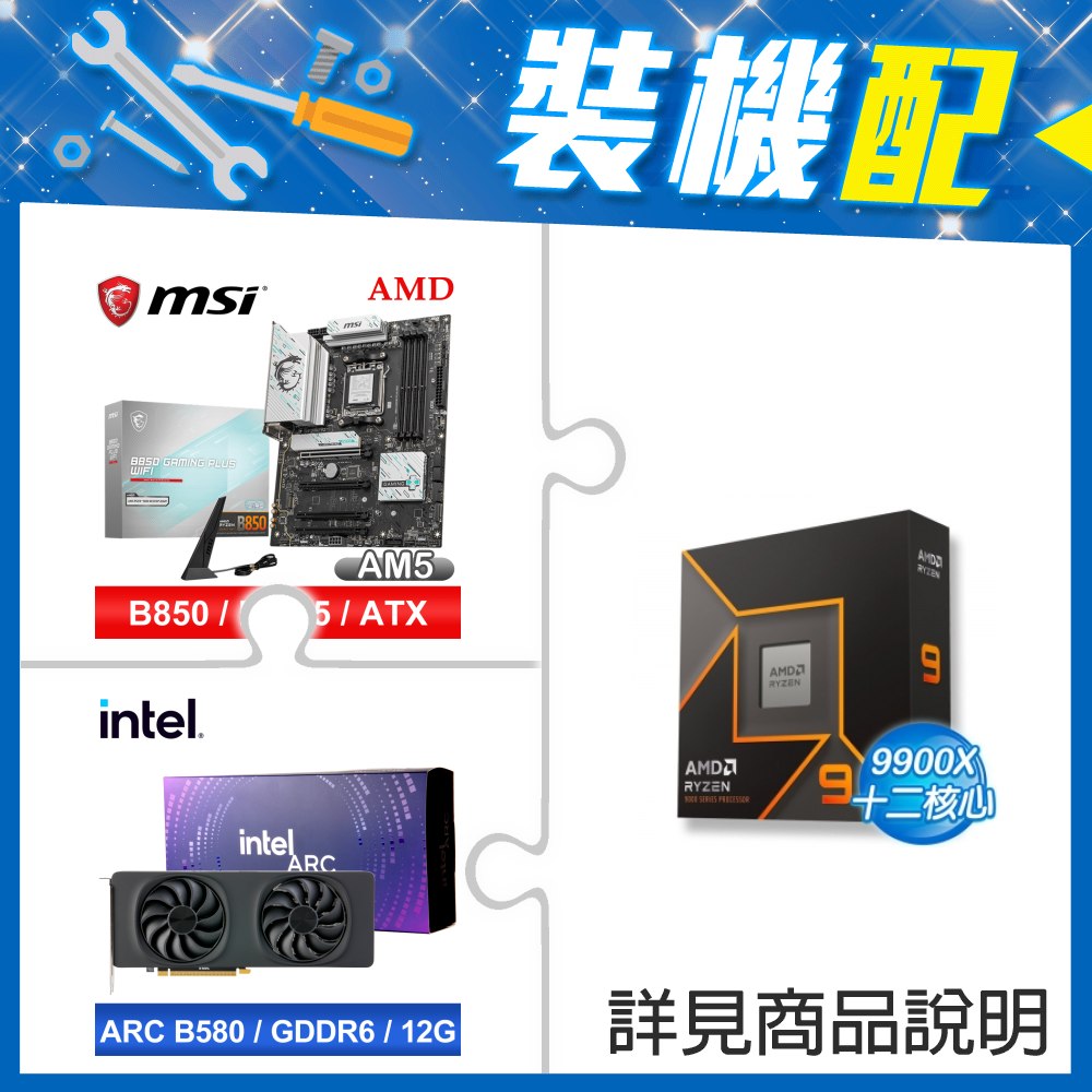 ☆裝機配★ AMD R9 9900X+微星 B850 GAMING PLUS WIFI ATX主機板+Intel Arc B580 12G 20 Core 顯示卡