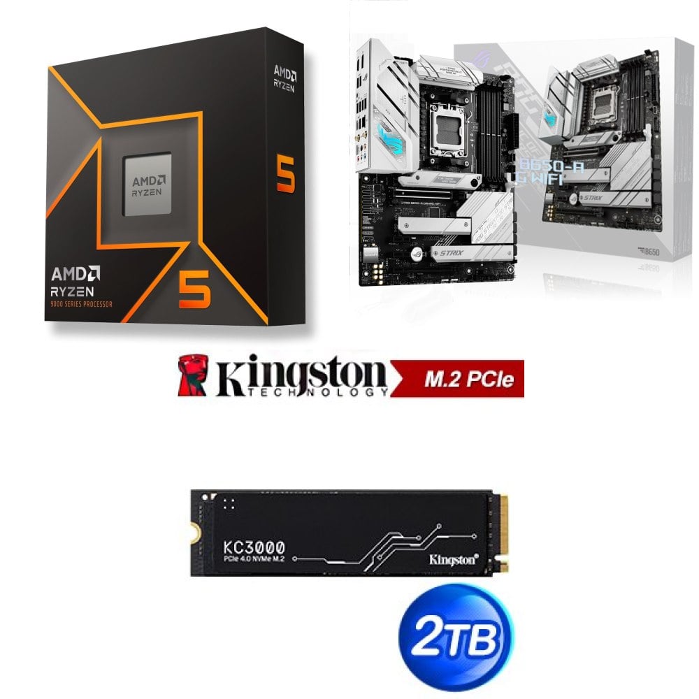 ☆裝機配★ AMD R5 9600X+華碩 ROG STRIX B650-A GAMING WIFI ATX主機板+金士頓 KC3000 2TB PCIe 4.0 NVMe M.2 SSD