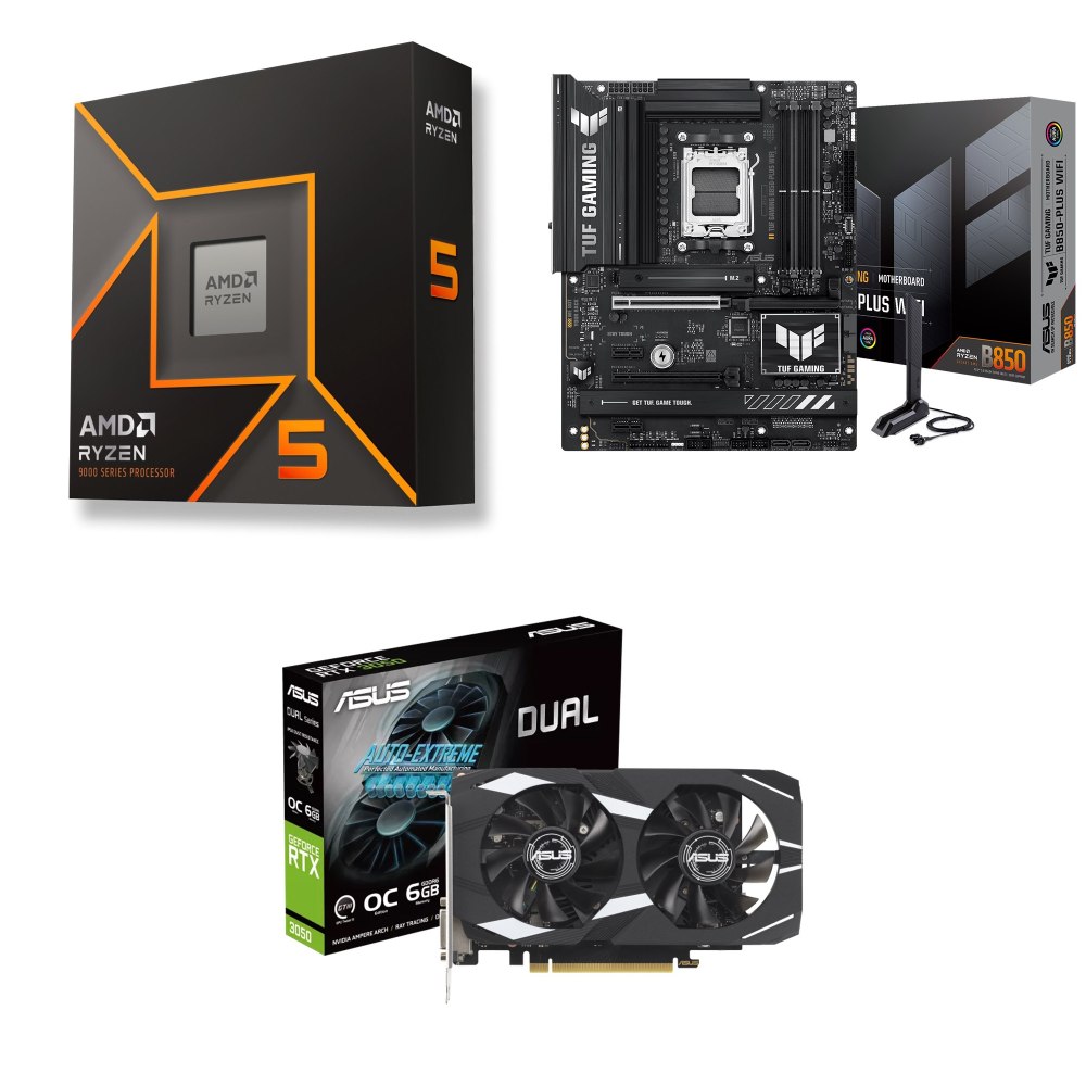 ☆裝機配★ AMD R5 9600X+華碩 TUF GAMING B850M-PLUS WIFI MATX主機板+華碩 DUAL-RTX3050-O6G 顯示卡