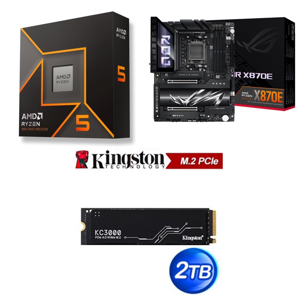 ☆裝機配★ AMD R5 9600X+華碩 ROG CROSSHAIR X870E HERO ATX主機板+金士頓 KC3000 2TB PCIe 4.0 NVMe M.2 SSD