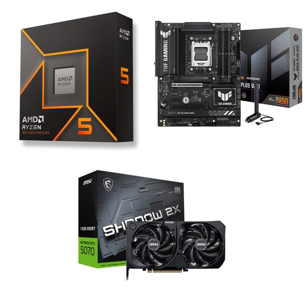 ☆裝機配★ AMD R5 9600X+華碩 TUF GAMING B850-PLUS WIFI ATX主機板+微星 RTX 5070 12G SHADOW 2X OC 顯示卡