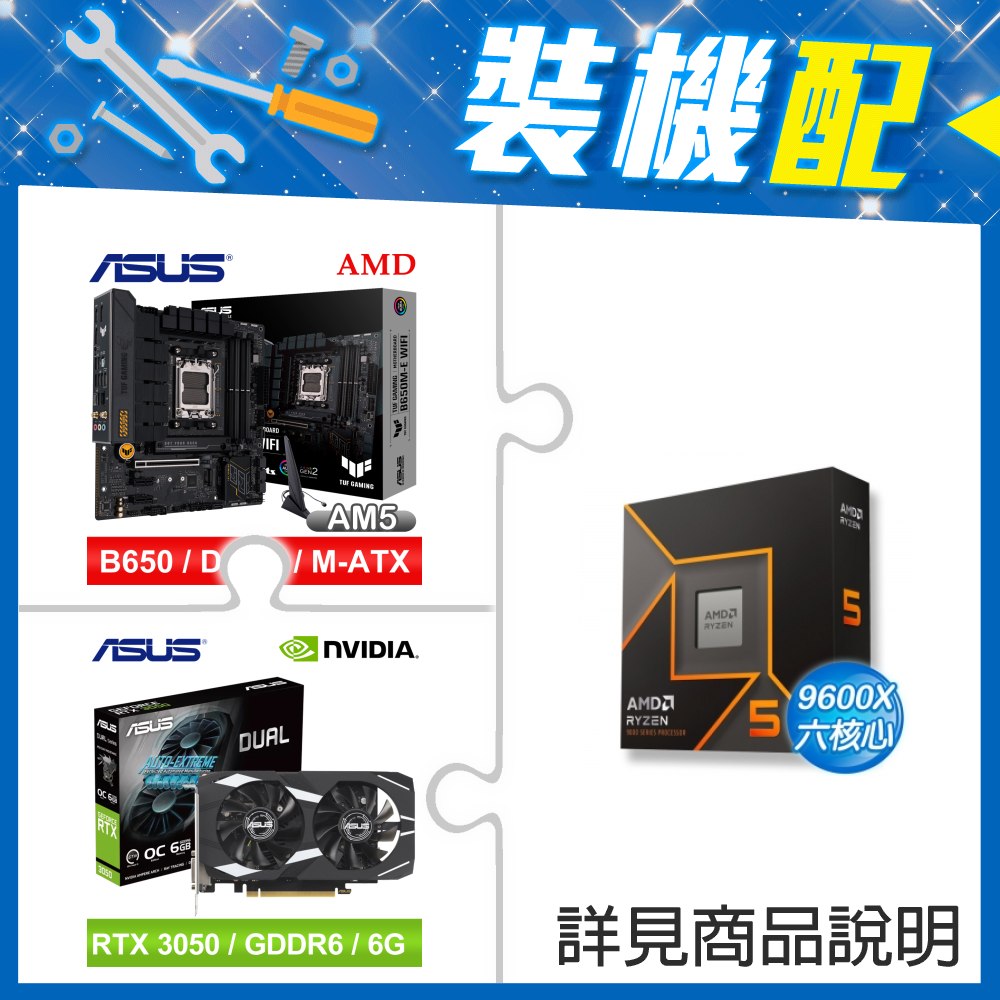 ☆裝機配★ AMD R5 9600X+華碩 TUF GAMING B650M-E WIFI D5 MATX主機板+華碩 DUAL-RTX3050-O6G 顯示卡