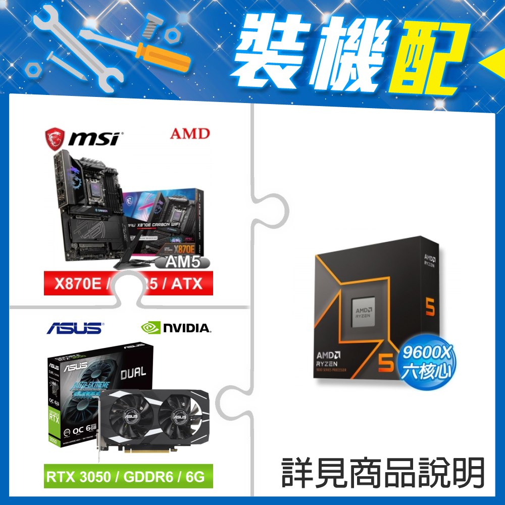 ☆裝機配★ AMD R5 9600X+微星 MPG X870E CARBON WIFI ATX主機板+華碩 DUAL-RTX3050-O6G 顯示卡