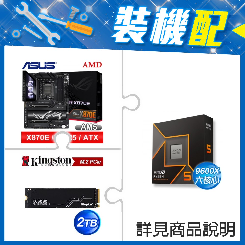 ☆裝機配★ AMD R5 9600X+華碩 ROG STRIX X870-A GAMING WIFI ATX主機板+金士頓 KC3000 2TB PCIe 4.0 NVMe M.2 SSD