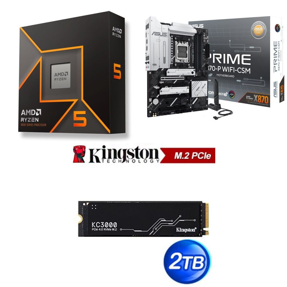 ☆裝機配★ AMD R5 9600X+華碩 PRIME X870-P WIFI-CSM ATX主機板+金士頓 KC3000 2TB PCIe 4.0 NVMe M.2 SSD