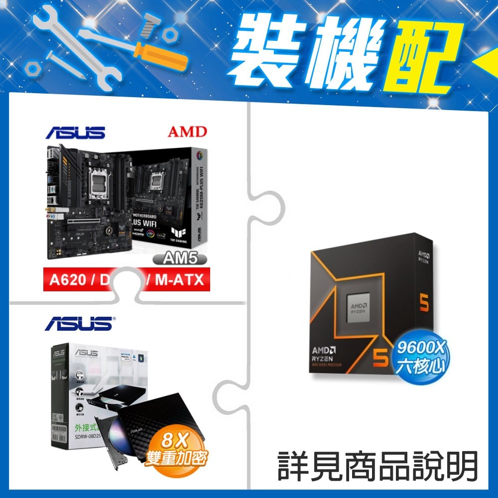 ☆裝機配★ AMD R5 9600X+華碩 TUF GAMING A620M-PLUS WIFI MATX主機板+華碩 SDRW-08D2S-U 外接式燒錄機《黑》