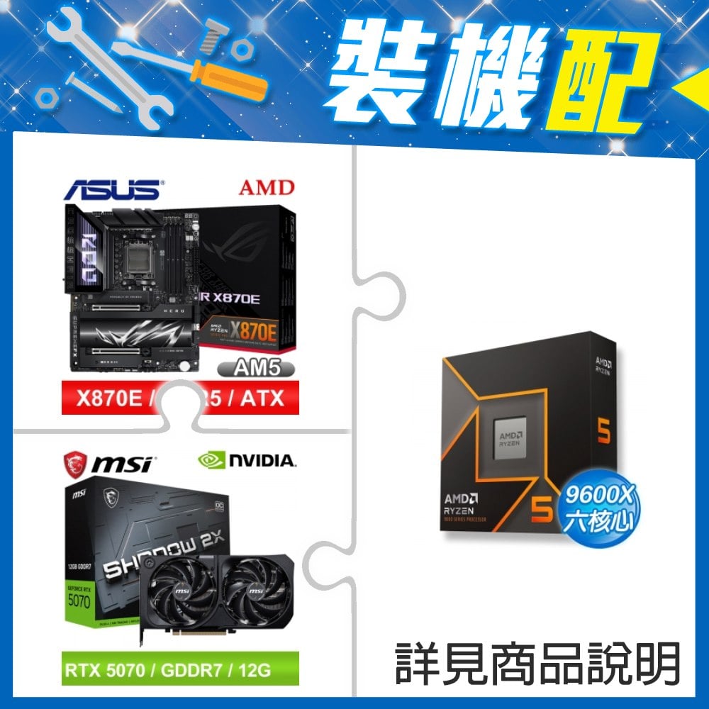 ☆裝機配★ AMD R5 9600X+華碩 ROG CROSSHAIR X870E HERO ATX主機板+微星 RTX 5070 12G SHADOW 2X OC 顯示卡