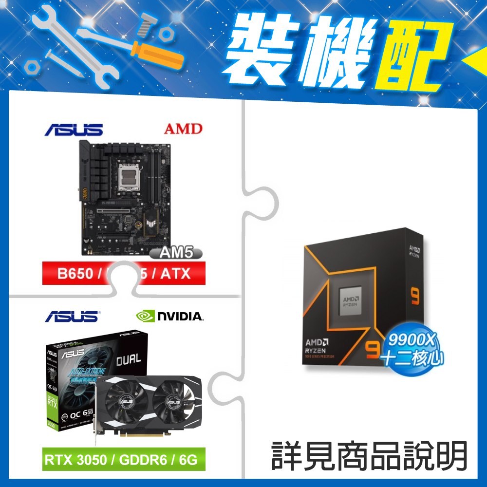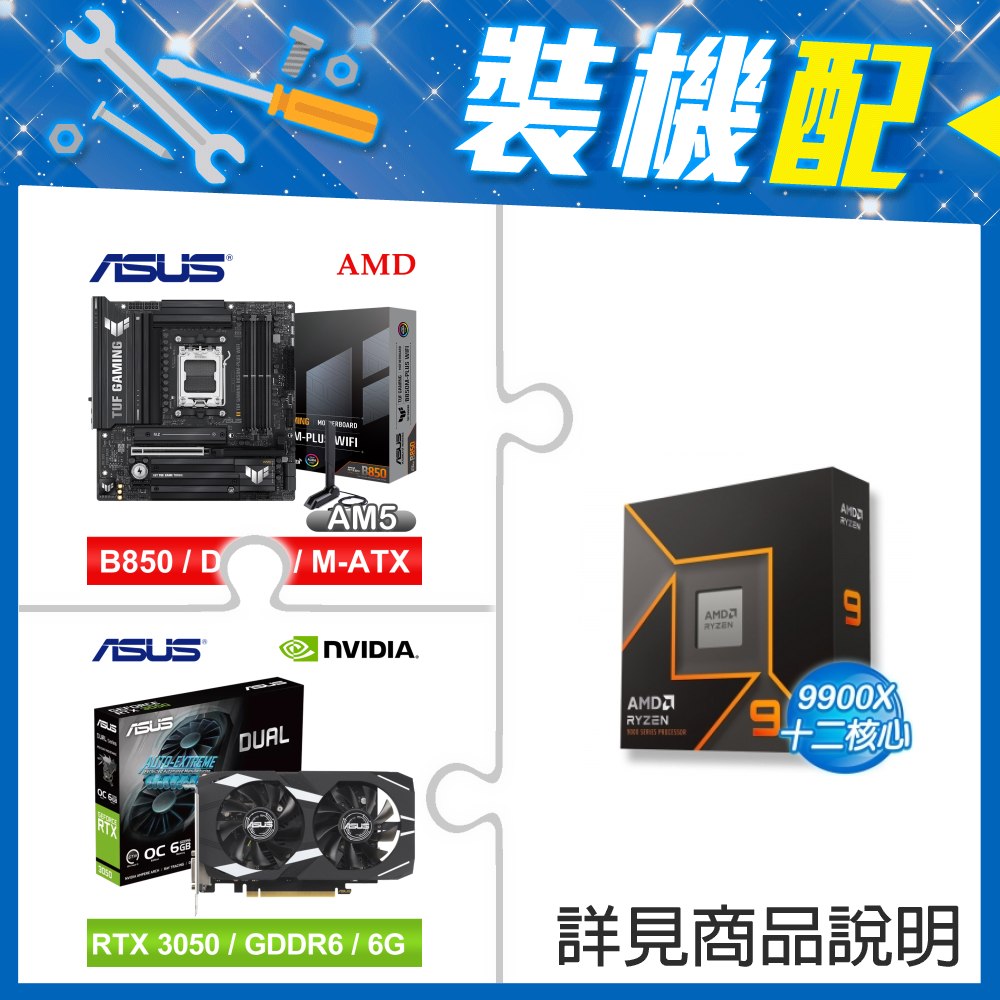 ☆裝機配★ AMD R9 9900X+華碩 TUF GAMING B850M-PLUS WIFI MATX主機板+華碩 DUAL-RTX3050-O6G 顯示卡
