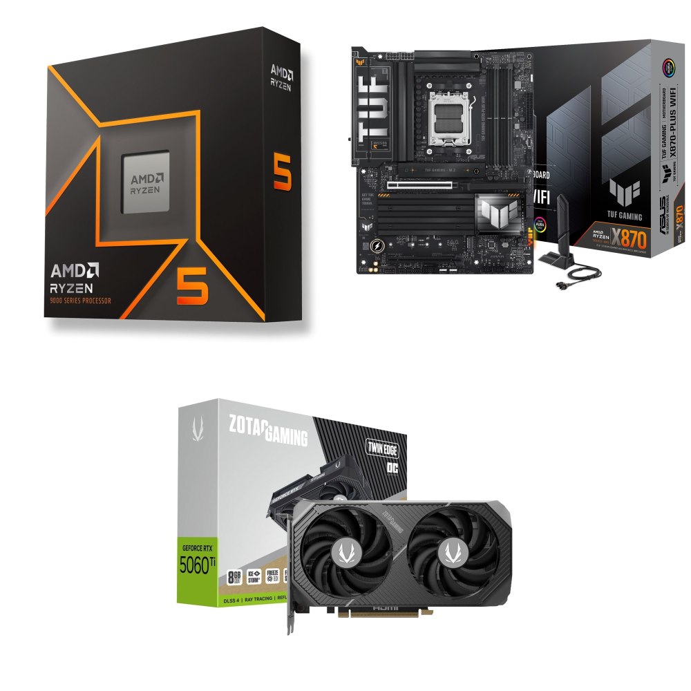 ☆裝機配★ AMD R5 9600X+華碩 TUF GAMING X870-PLUS WIFI ATX主機板+索泰 RTX 5060 TI 8GB Twin Edge OC 顯示卡