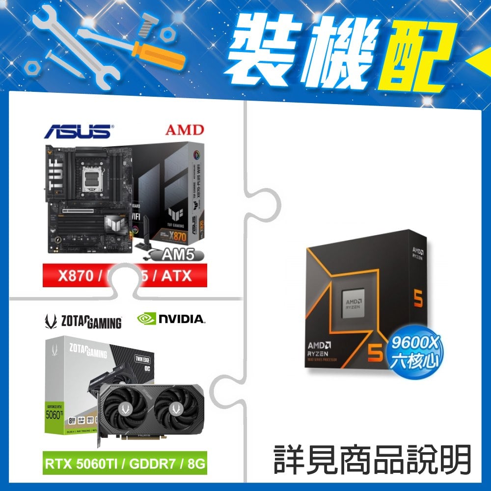 ☆裝機配★ AMD R5 9600X+華碩 TUF GAMING X870-PLUS WIFI ATX主機板+索泰 RTX 5060 TI 8GB Twin Edge OC 顯示卡