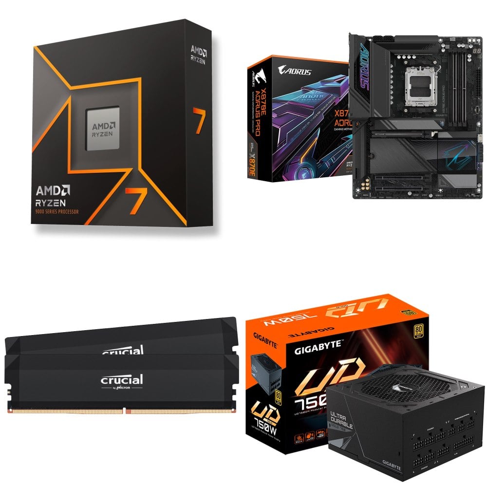 ☆期間限定★ AMD R7 9700X+技嘉 X870E AORUS PRO ATX主機板+美光 Crucial PRO DDR5-6000 16G*2 CL36 記憶體《黑》+技嘉 UD750GM 金牌 全模組 電源供應器