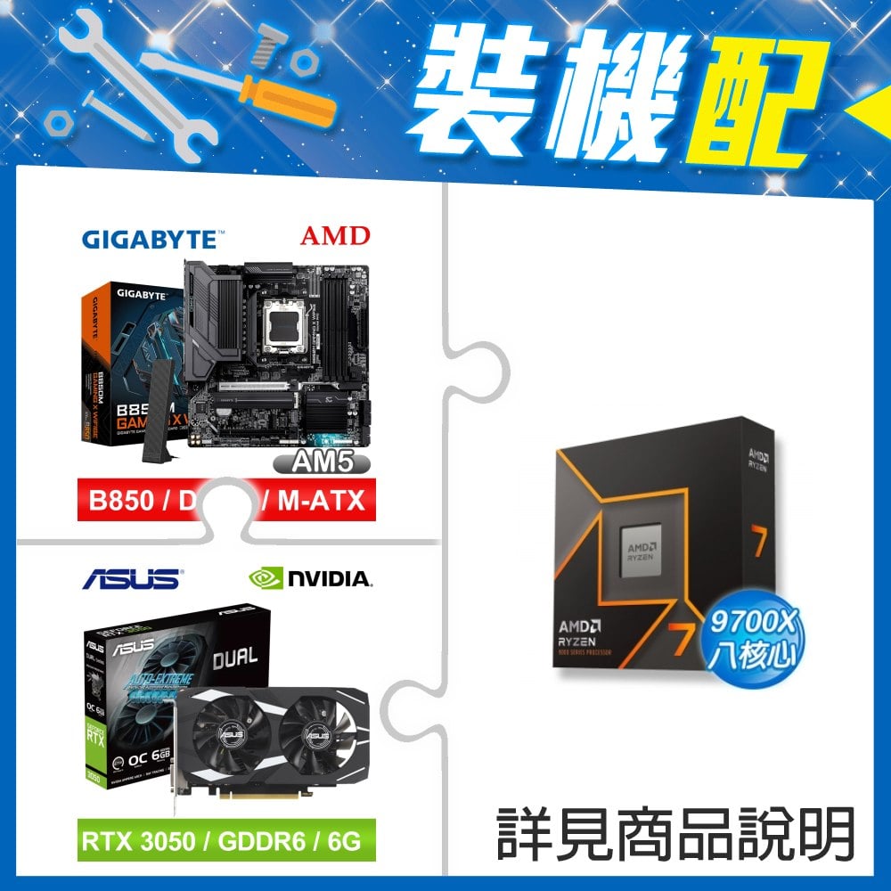 ☆裝機配★ AMD R5 7600+技嘉 B650M H MATX主機板+華碩 DUAL-RTX3050-O6G 顯示卡