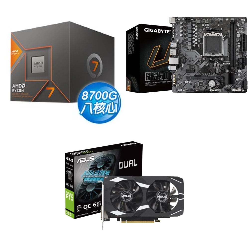 ☆裝機配★ AMD R7 8700G+技嘉 B650M H MATX主機板+華碩 DUAL-RTX3050-O6G 顯示卡