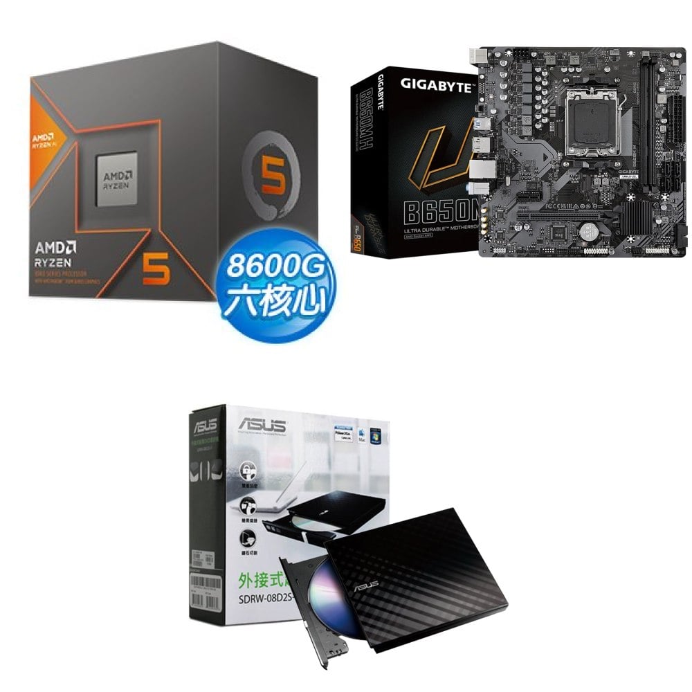 ☆裝機配★ AMD R5 8600G+技嘉 B650M H MATX主機板+華碩 SDRW-08D2S-U 外接式燒錄機《黑》