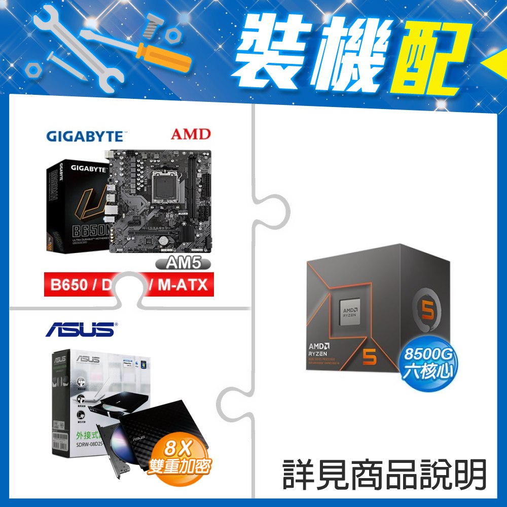 ☆裝機配★ AMD R5 8500G+技嘉 B650M H MATX主機板+華碩 SDRW-08D2S-U 外接式燒錄機《黑》