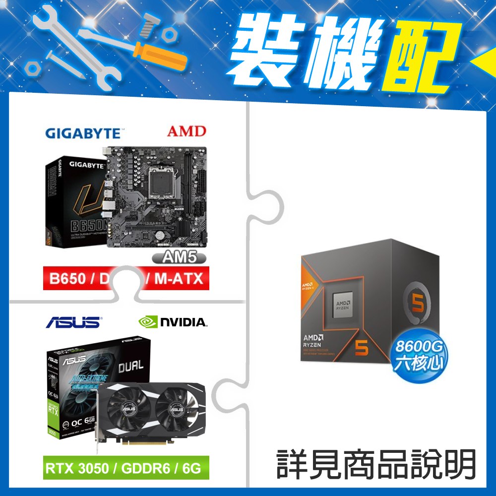 ☆裝機配★ AMD R5 8600G+技嘉 B650M H MATX主機板+華碩 DUAL-RTX3050-O6G 顯示卡