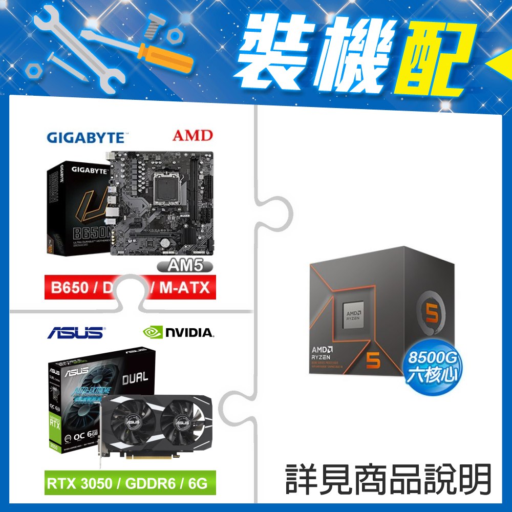 ☆裝機配★ AMD R5 8500G+技嘉 B650M H MATX主機板+華碩 DUAL-RTX3050-O6G 顯示卡