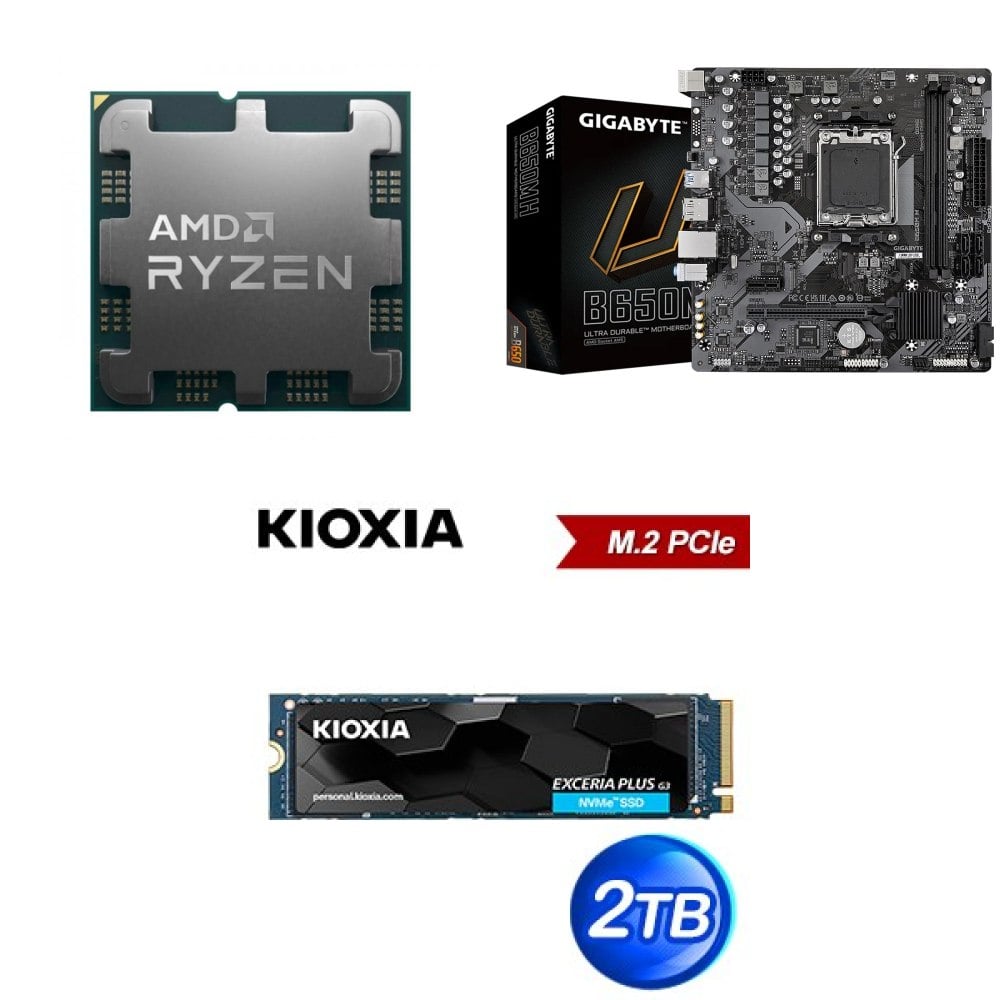 ☆裝機配★ AMD R7 7700 MPK+技嘉 B650M H MATX主機板+鎧俠 EXCERIA PLUS G3 2TB PCIe Gen4x4 SSD