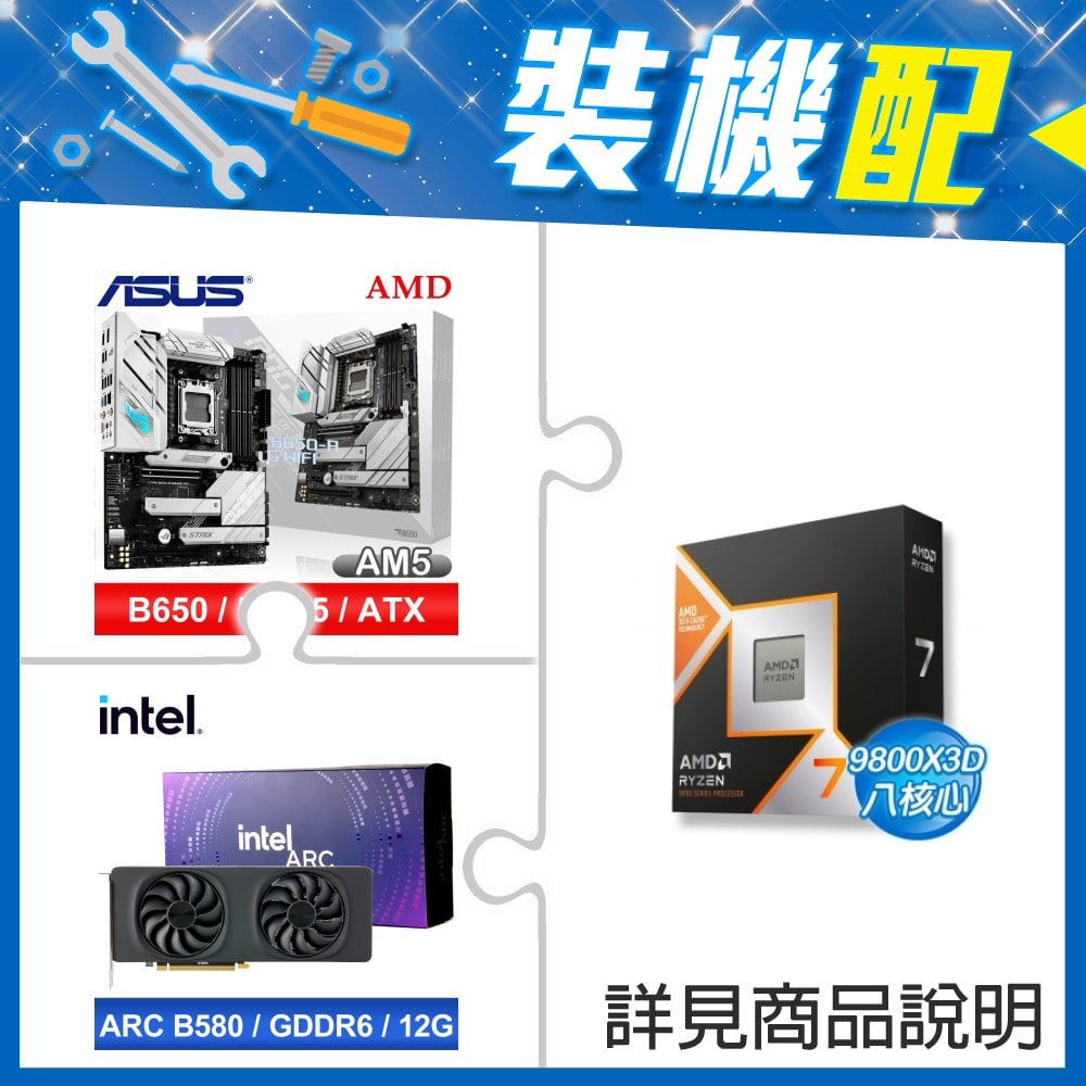 ☆裝機配★ AMD R7 9800X3D+華碩 ROG STRIX B650-A GAMING WIFI ATX主機板+Intel Arc B580 12G 20 Core 顯示卡