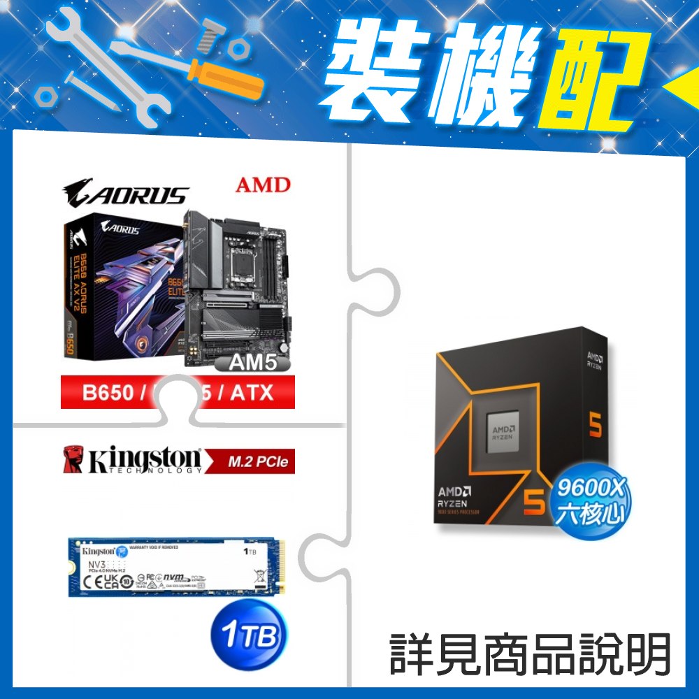 ☆裝機配★ AMD R5 9600X+技嘉 B650 AORUS ELITE AX V2 D5 ATX主機板+金士頓 NV3 1TB M.2 PCIe SSD