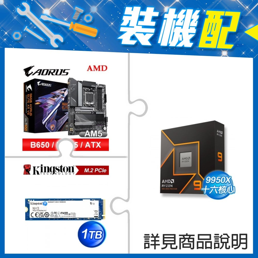 ☆裝機配★ AMD R9 9950X+技嘉 B650 AORUS ELITE AX V2 D5 ATX主機板+金士頓 NV3 1TB M.2 PCIe SSD