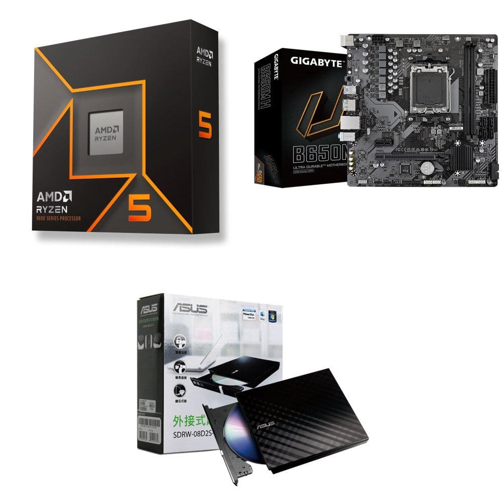 ☆裝機配★ AMD R5 9600X+技嘉 B650M H MATX主機板+華碩 SDRW-08D2S-U 外接式燒錄機《黑》