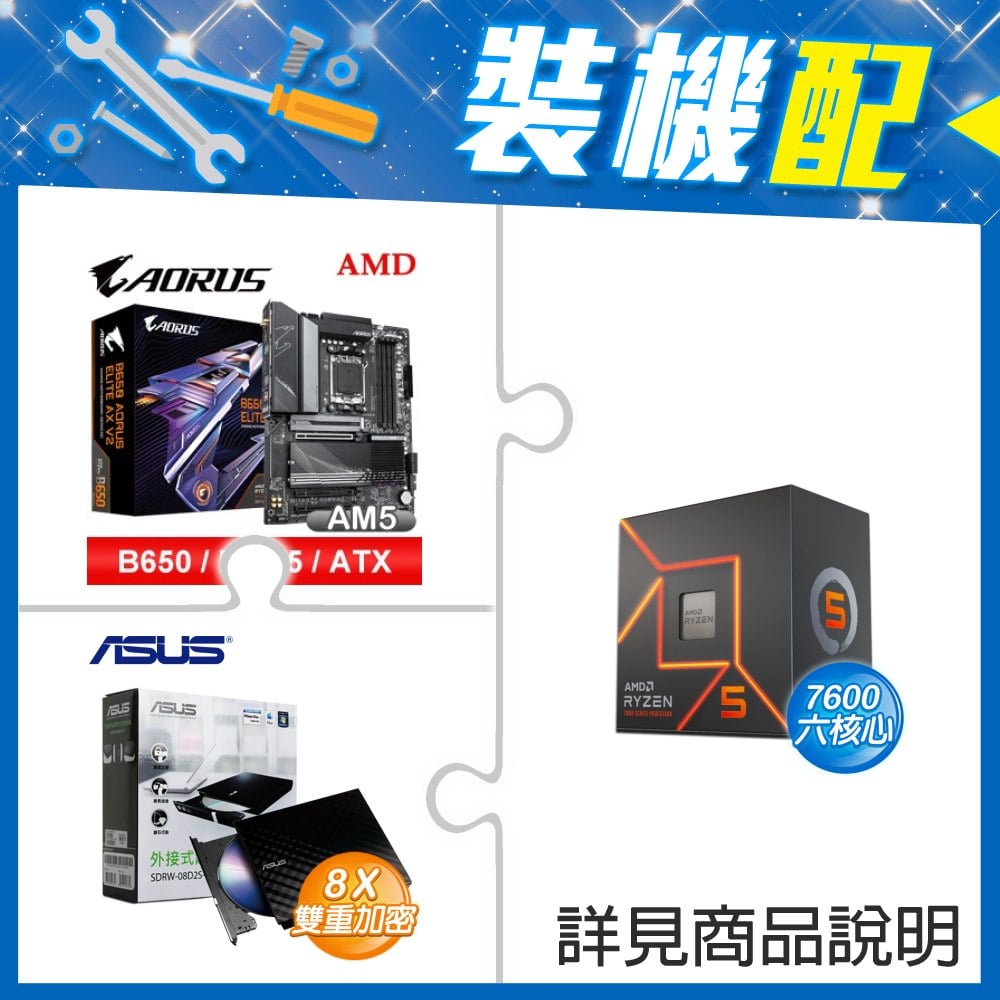 ☆裝機配★ AMD R5 7600+技嘉 B650 AORUS ELITE AX V2 D5 ATX主機板+華碩 SDRW-08D2S-U 外接式燒錄機《黑》