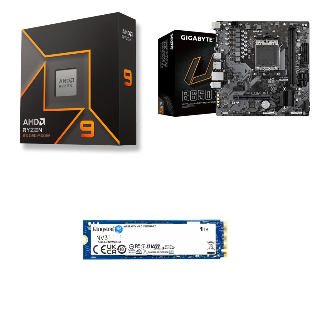 ☆裝機配★ AMD R9 9900X+技嘉 B650M H MATX主機板+金士頓 NV3 1TB M.2 PCIe SSD