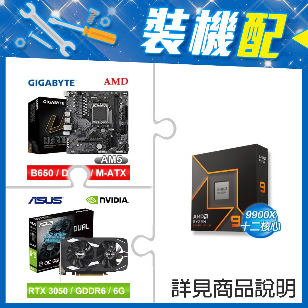 ☆裝機配★ AMD R9 9900X+技嘉 B650M H MATX主機板+華碩 DUAL-RTX3050-O6G 顯示卡