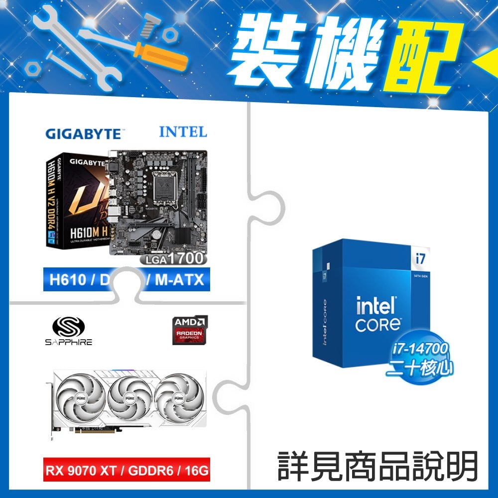 ☆裝機配★ i7-14700+技嘉 H610M H V2 D4 MATX主機板+藍寶石 PURE 極地 RX 9070 XT GAMING OC 16GB 顯示卡