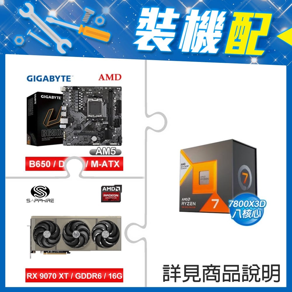 ☆裝機配★ AMD R7 7800X3D+技嘉 B650M H MATX主機板+藍寶石 NITRO+ 氮動 RX 9070 XT GAMING OC 16GB 顯示卡
