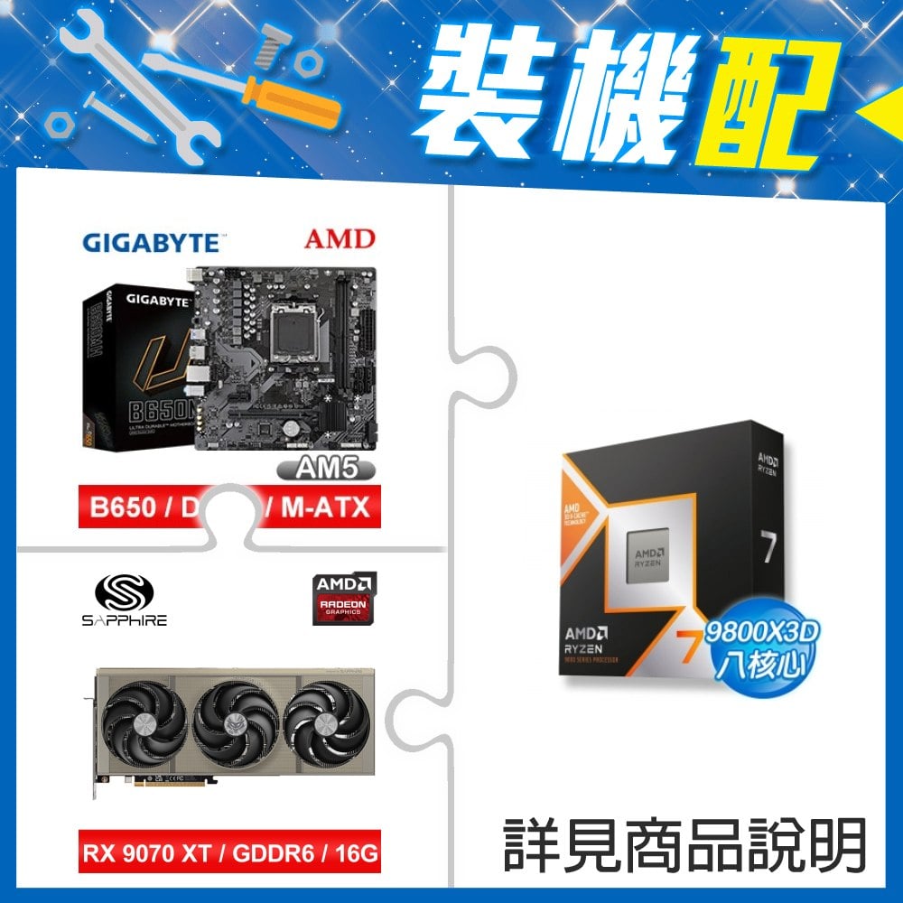 ☆裝機配★ AMD R7 9800X3D+技嘉 B650M H MATX主機板+藍寶石 NITRO+ 氮動 RX 9070 XT GAMING OC 16GB 顯示卡