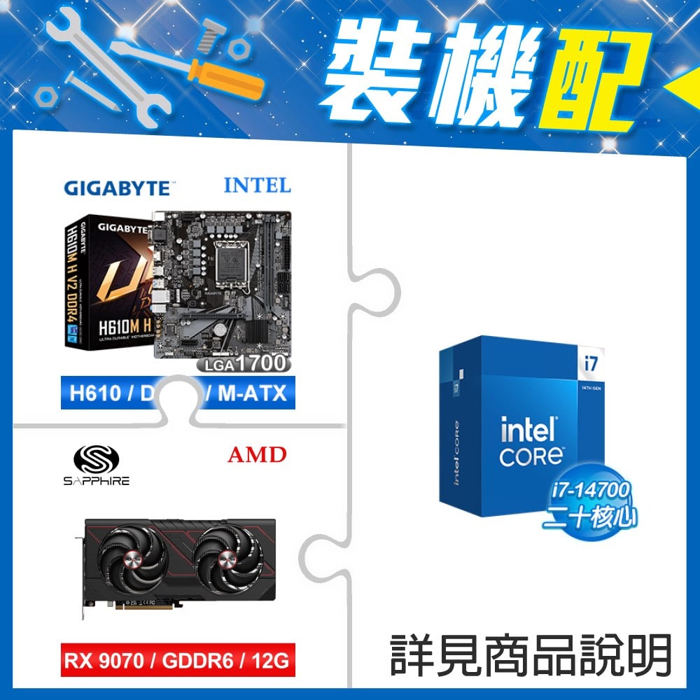 ☆裝機配★ i7-14700+技嘉 H610M H V2 D4 MATX主機板+藍寶石 PULSE 脈動 RX 9070 GRE GAMING 12GB 顯示卡