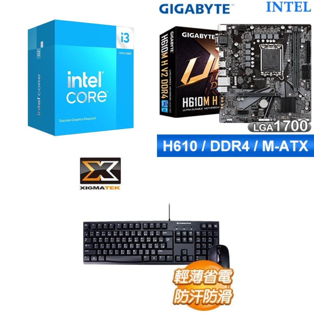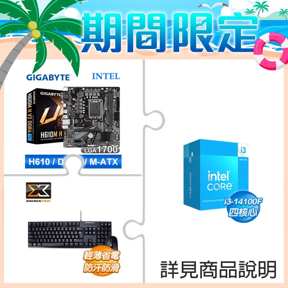 ☆期間限定★ i3-14100F+技嘉 H610M H V2 D4 M-ATX主機板 ★送富鈞 XK-100 USB鍵鼠組