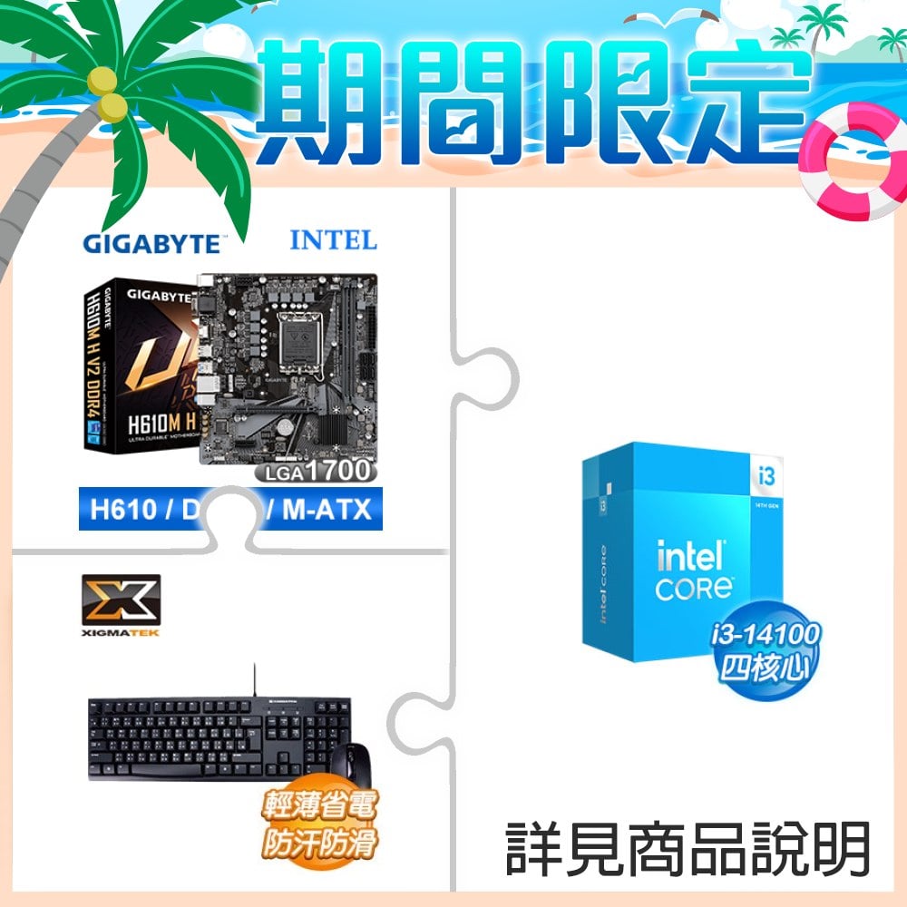 ☆期間限定★ i3-14100+技嘉 H610M H V2 D4 M-ATX主機板 ★送富鈞 XK-100 USB鍵鼠組