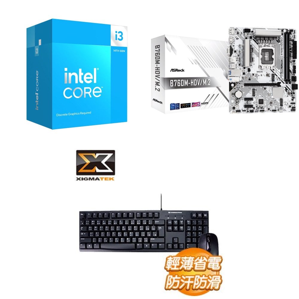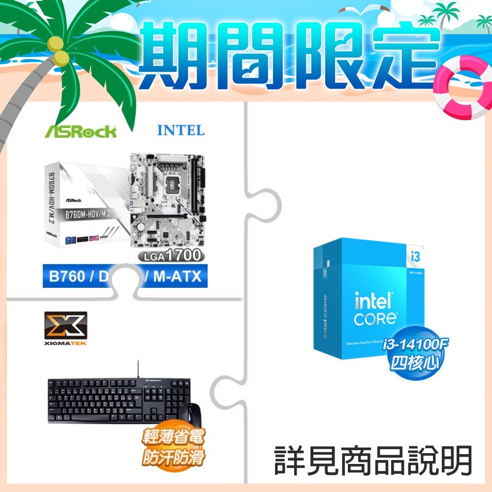 ☆期間限定★ i3-14100F+華擎 B760M-HDV/M.2 D5 M-ATX主機板 ★送富鈞 XK-100 USB鍵鼠組