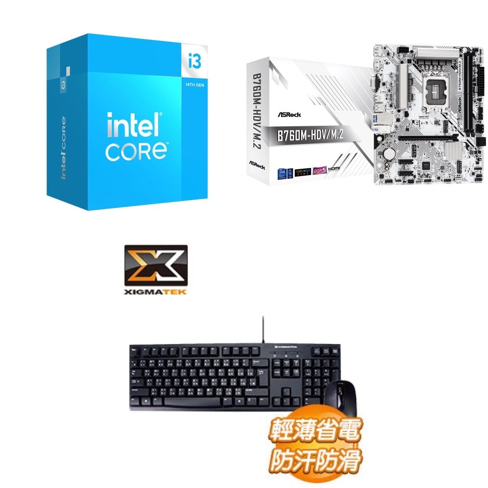☆期間限定★ i3-14100+華擎 B760M-HDV/M.2 D5 M-ATX主機板 ★送富鈞 XK-100 USB鍵鼠組