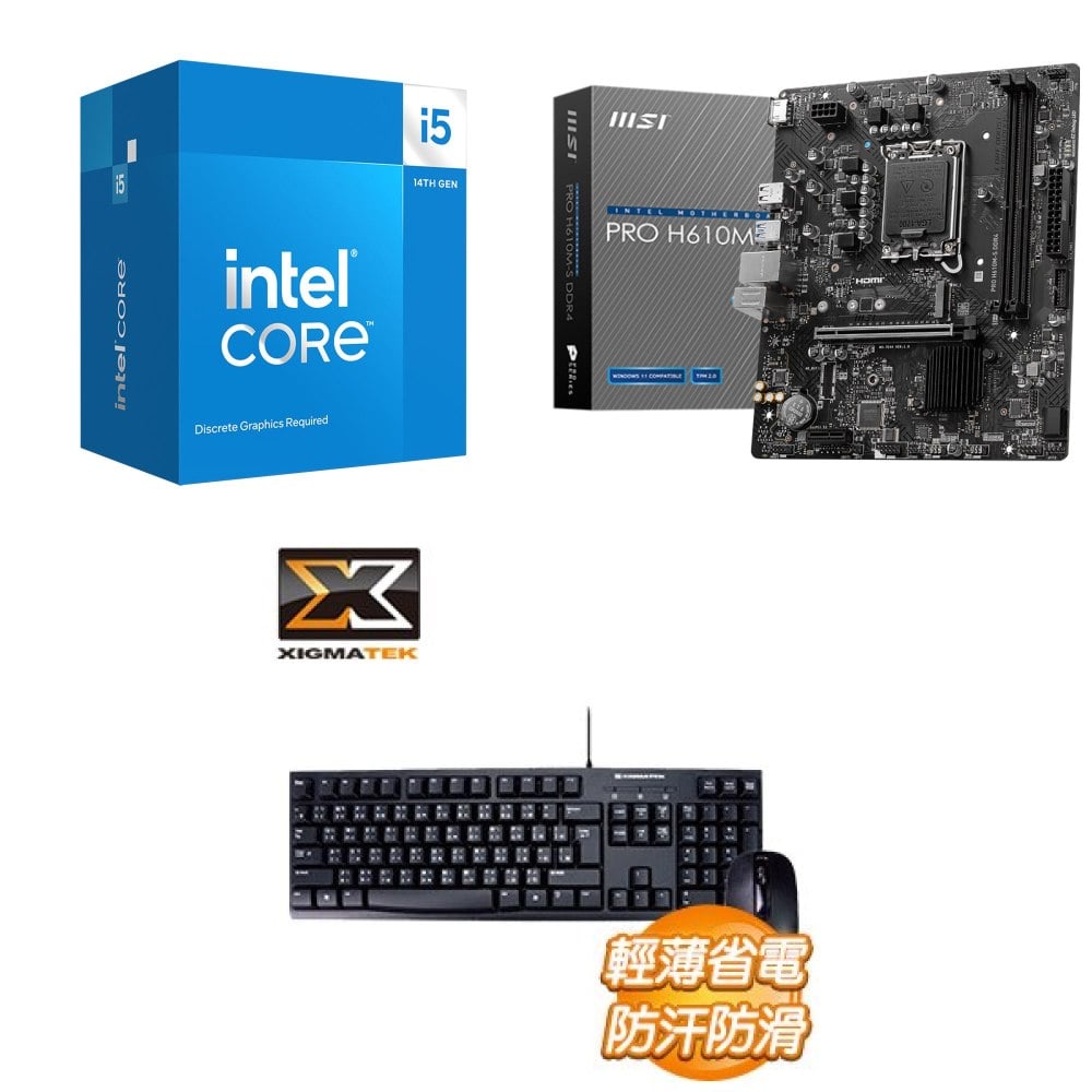 ☆期間限定★ i5-14400F+微星 PRO H610M-S D4 M-ATX主機板 ★送富鈞 XK-100 USB鍵鼠組