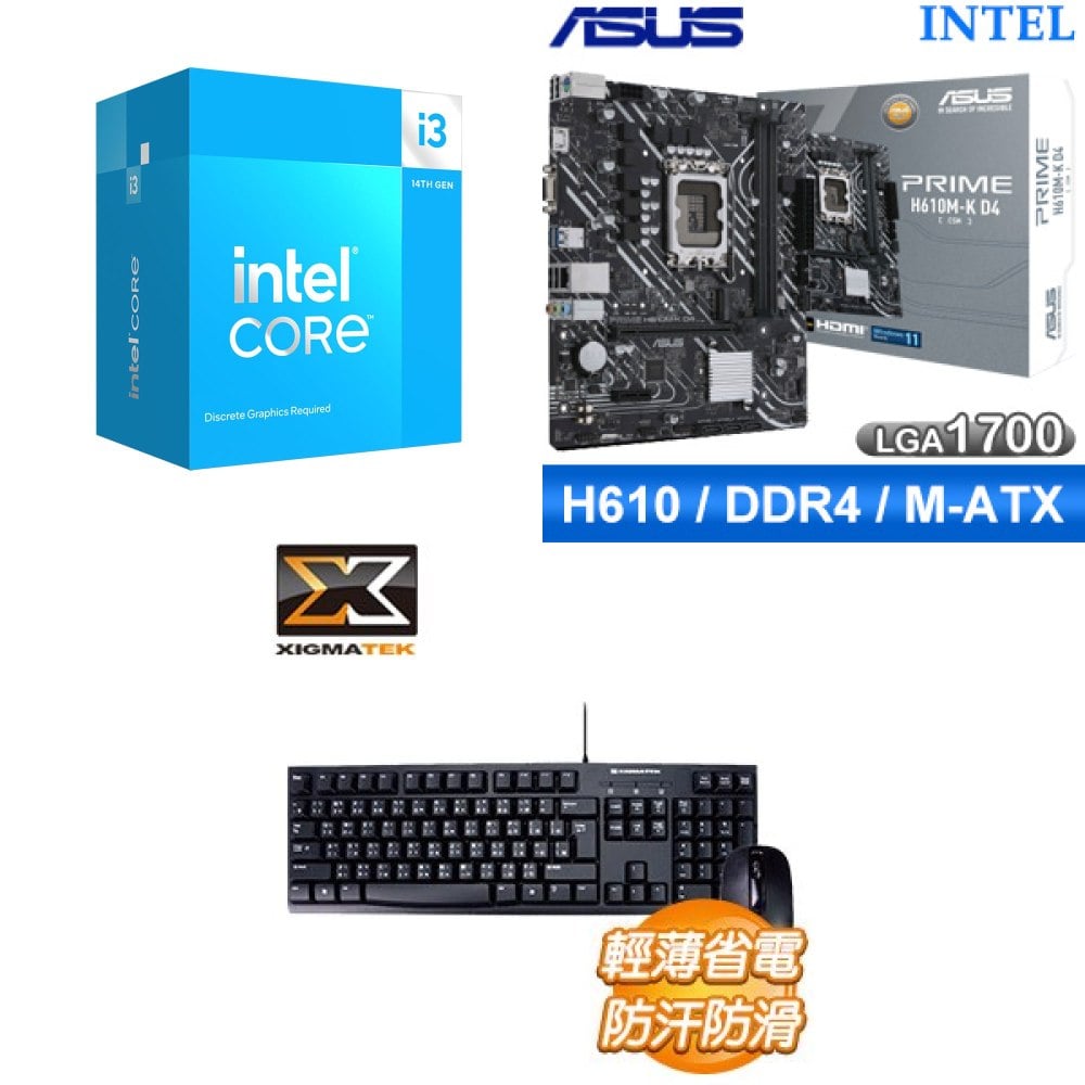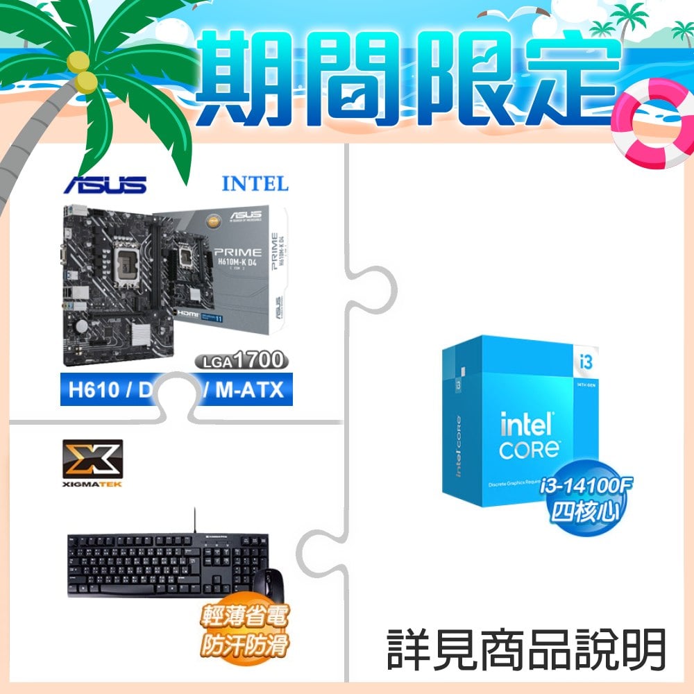 ☆期間限定★ i3-14100F+華碩 PRIME H610M-K D4-CSM M-ATX主機板 ★送富鈞 XK-100 USB鍵鼠組