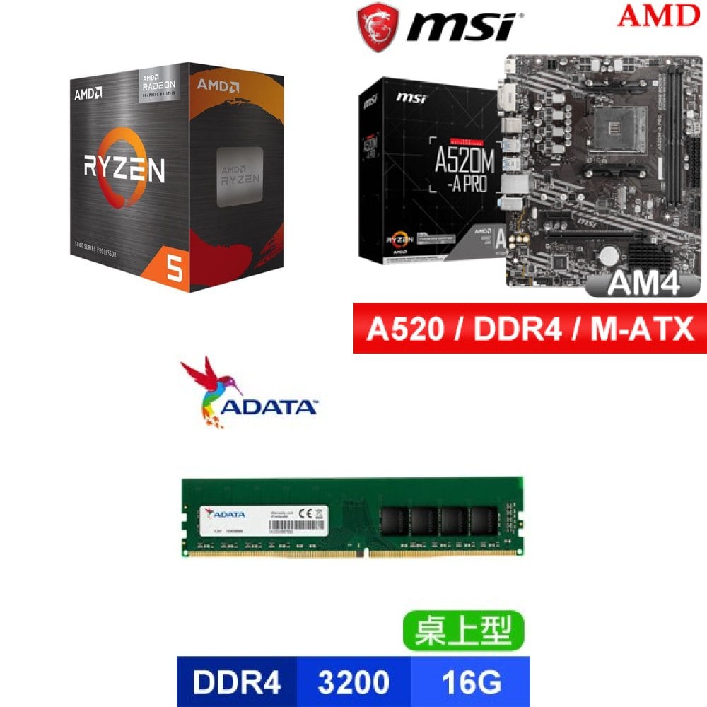 ☆期間限定★ AMD R5 5500GT+微星 A520M-A PRO M-ATX主機板+威剛 DDR4-3200 16G 記憶體