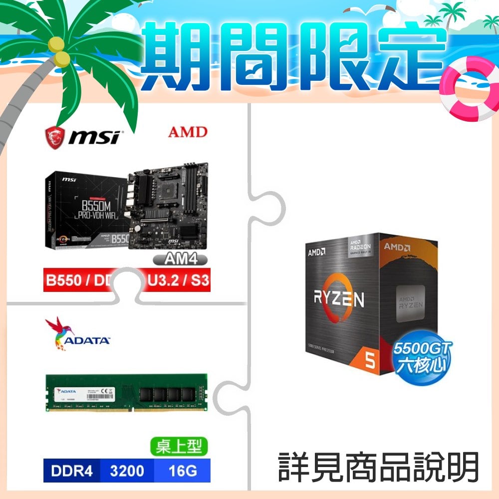 ☆期間限定★ AMD R5 5500GT+微星 B550M PRO-VDH WIFI M-ATX主機板+威剛 DDR4-3200 16G 記憶體