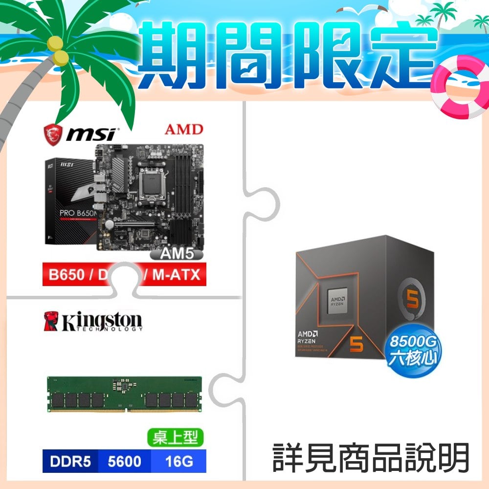 ☆期間限定★ AMD R5 8500G+微星 PRO B650M-P M-ATX主機板+金士頓 DDR5-5600 16G CL46 記憶體