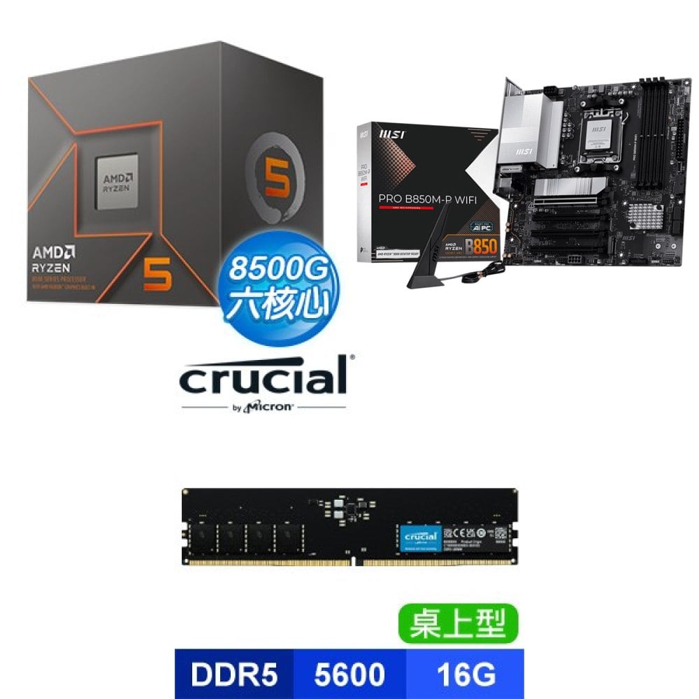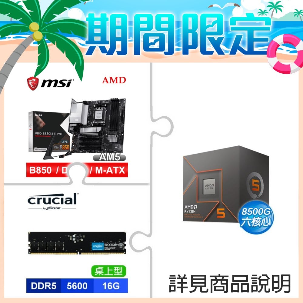 ☆期間限定★ AMD R5 8500G+微星 PRO B850M-P WIFI M-ATX主機板+美光 Crucial DDR5-5600 16G 記憶體
