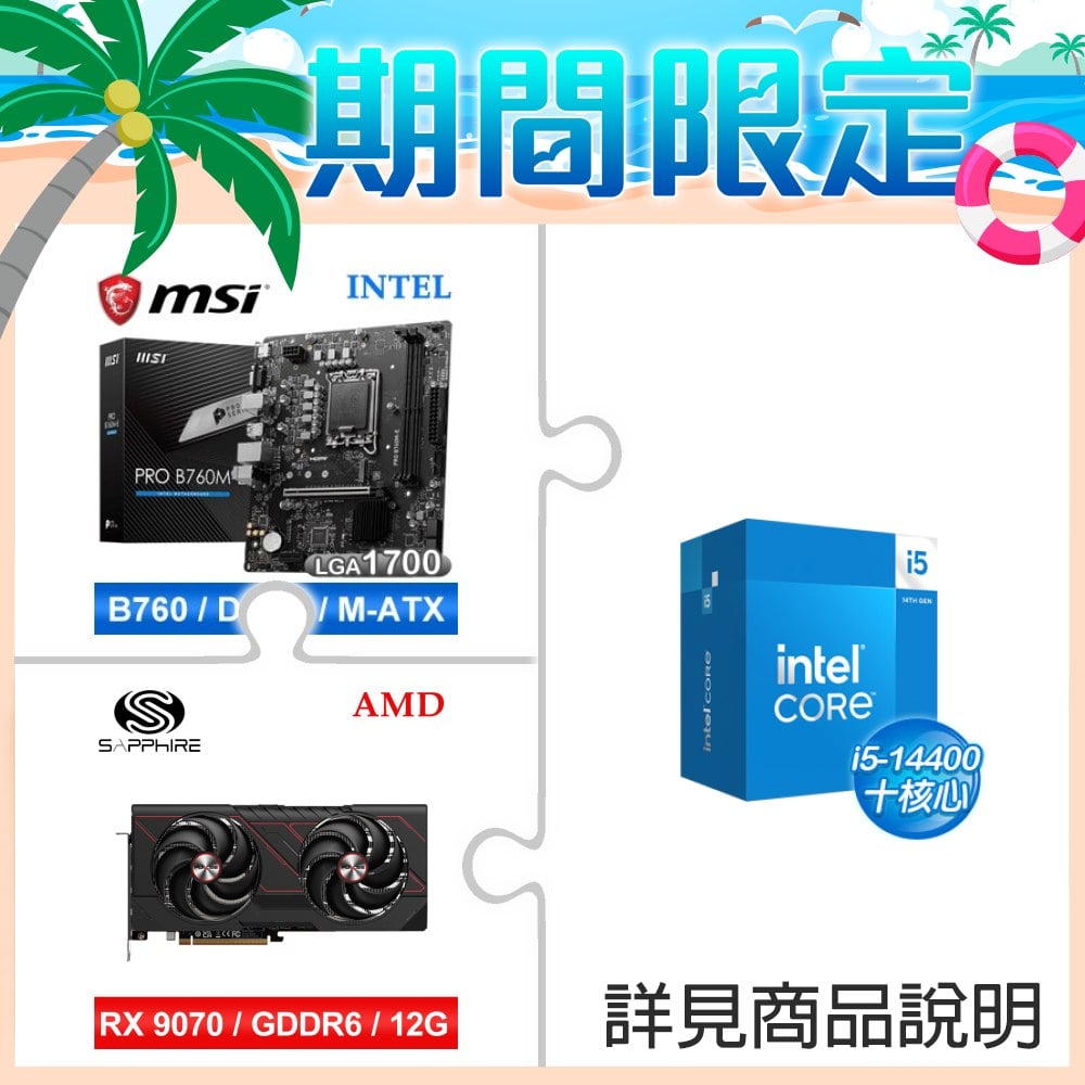 ☆期間限定★ i5-14400+微星 PRO B760M-E D5 M-ATX主機板+藍寶石 PULSE 脈動 RX 9070 GRE GAMING 12GB 顯示卡