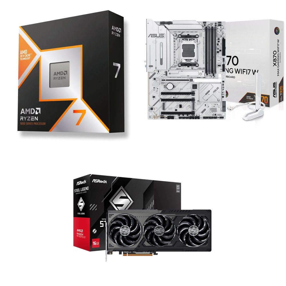 ☆期間限定★ AMD R7 9800X3D+華碩 X870 MAX GAMING WIFI7 W ATX主機板+華擎 RX 9070 XT Steel Legend 16GB(DARK) 顯示卡