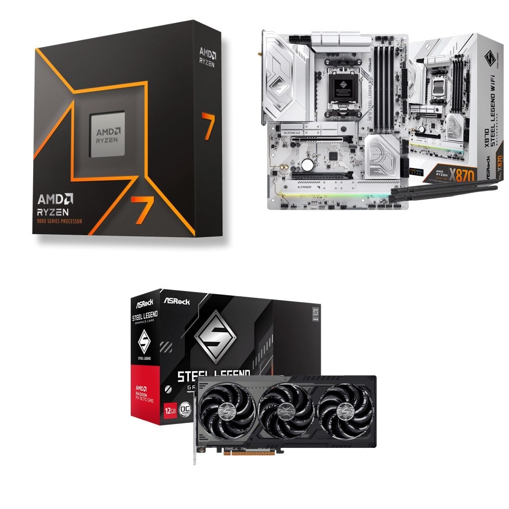 ☆期間限定★ AMD R7 9700X+華擎 X870 Steel Legend WiFi ATX主機板+華擎 RX 9070 GRE Steel Legend Dark 12GB OC 顯示卡