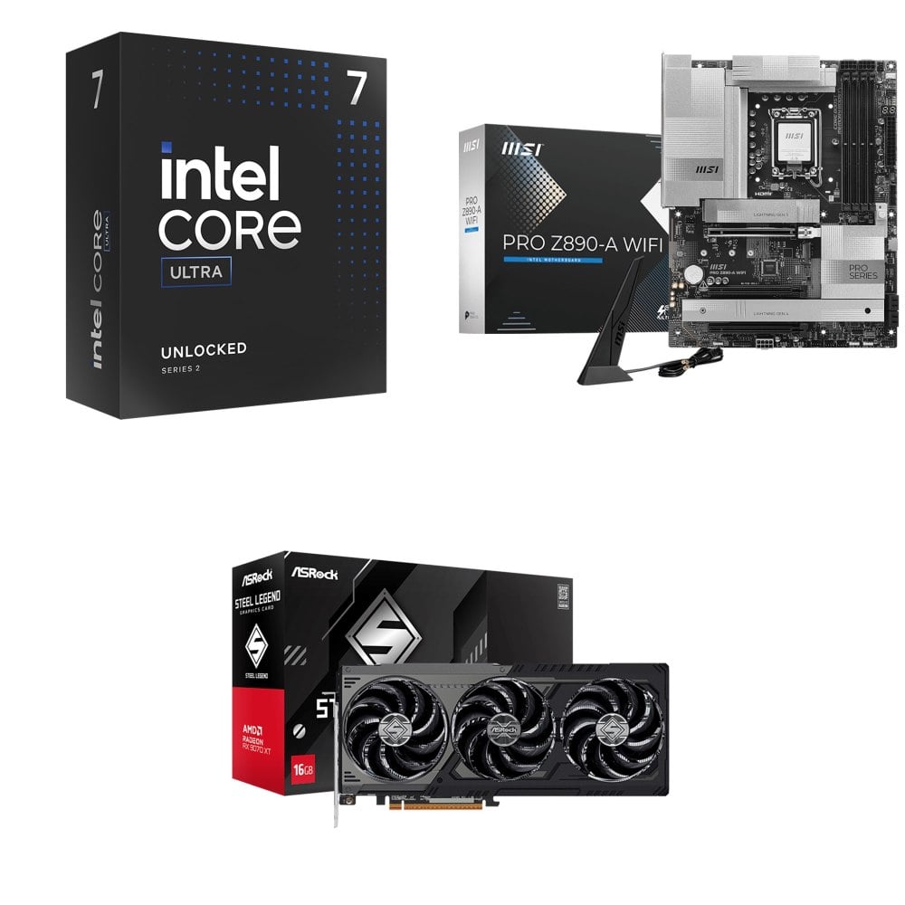 ☆期間限定★ Intel Core Ultra 7 265K+微星 PRO Z890-A WIFI D5 ATX主機板+華擎 RX 9070 XT Steel Legend 16GB(DARK) 顯示卡