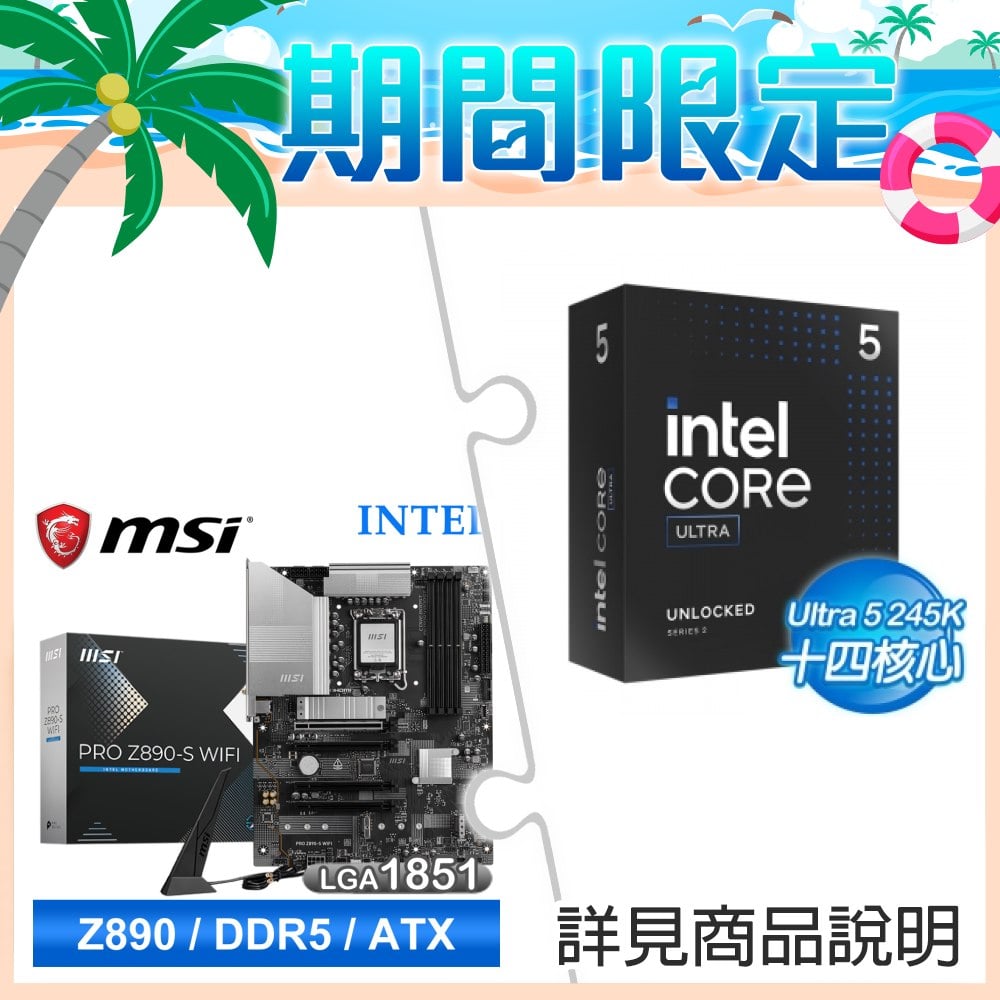 ☆期間限定★ Intel Core Ultra 5 245K+微星 PRO Z890-S WIFI D5 ATX主機板