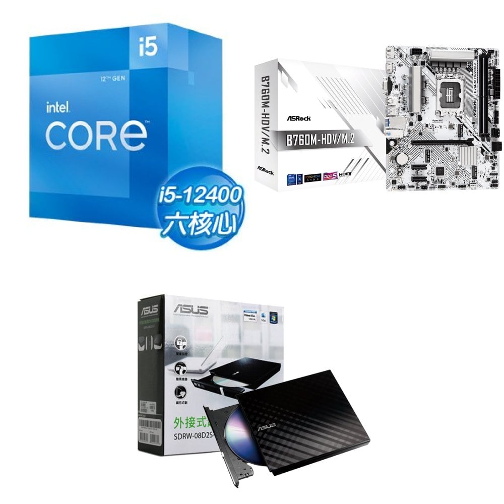 ☆期間限定★ i5-12400+華擎 B760M-HDV/M.2 D5 M-ATX主機板 ★送華碩 外接燒錄器《黑》(SDRW-08D2S-U)
